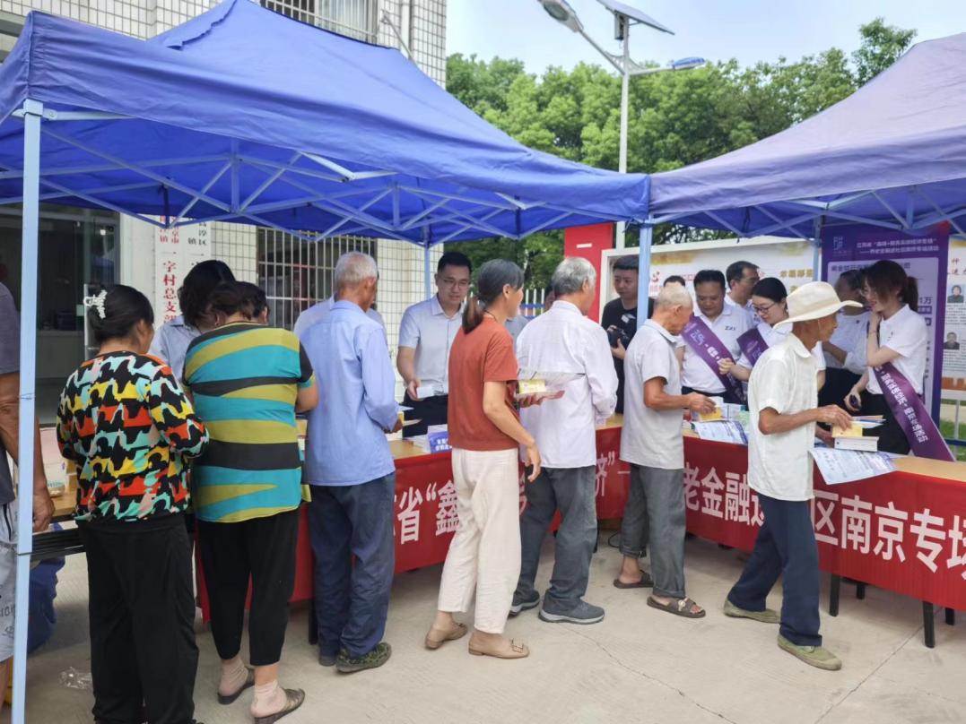为进一步向群众普及养老金融知识,提高群众金融安全意识和诚信意识,2024年8月28日下午,高淳区发改委、阳江镇政府配合省、市委金融办,联合紫金保险公司及中国人寿公司在阳江镇一字村开展了“鑫锋+服务实体经济”养老金融进社区暨“守住钱袋子·护好幸福家”为主题的防范非法集资和诚信宣传南京专场活动。