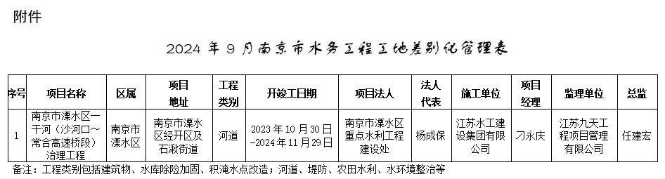 附件:2024年9月南京市水务工程差别化管理工地表附件
