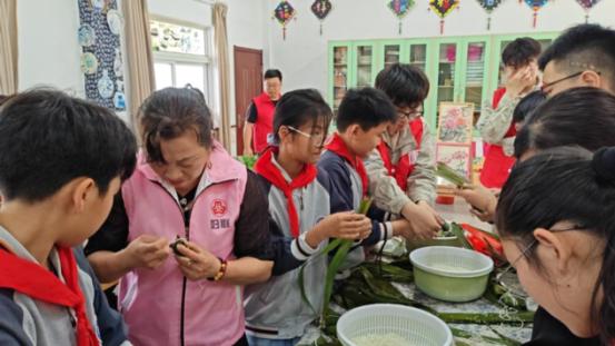 在 “巧手包诚粽” 实践课堂上,学生们围坐在一起,在老师和志愿者的指导下,将糯米、红枣填入粽叶,每一个步骤都严谨认真。“包粽子要把粽叶裹紧实,就像做人要诚实守信,容不得半点虚假。粽叶要裹紧才能不漏米,就像诚信需要言行一致,棉线缠绕粽子时,就像用规则约束自己”现场志愿者将包粽子步骤与诚信内涵巧妙结合,引导学生在实践中领悟诚信如粽,表里如一的深意。参与活动的同学捧着亲手包的粽子感慨:“原来粽子的每一道工序都在教我们做人要踏实守信!古人就这么重视诚信,我们更要做诚实守信的小学生!”