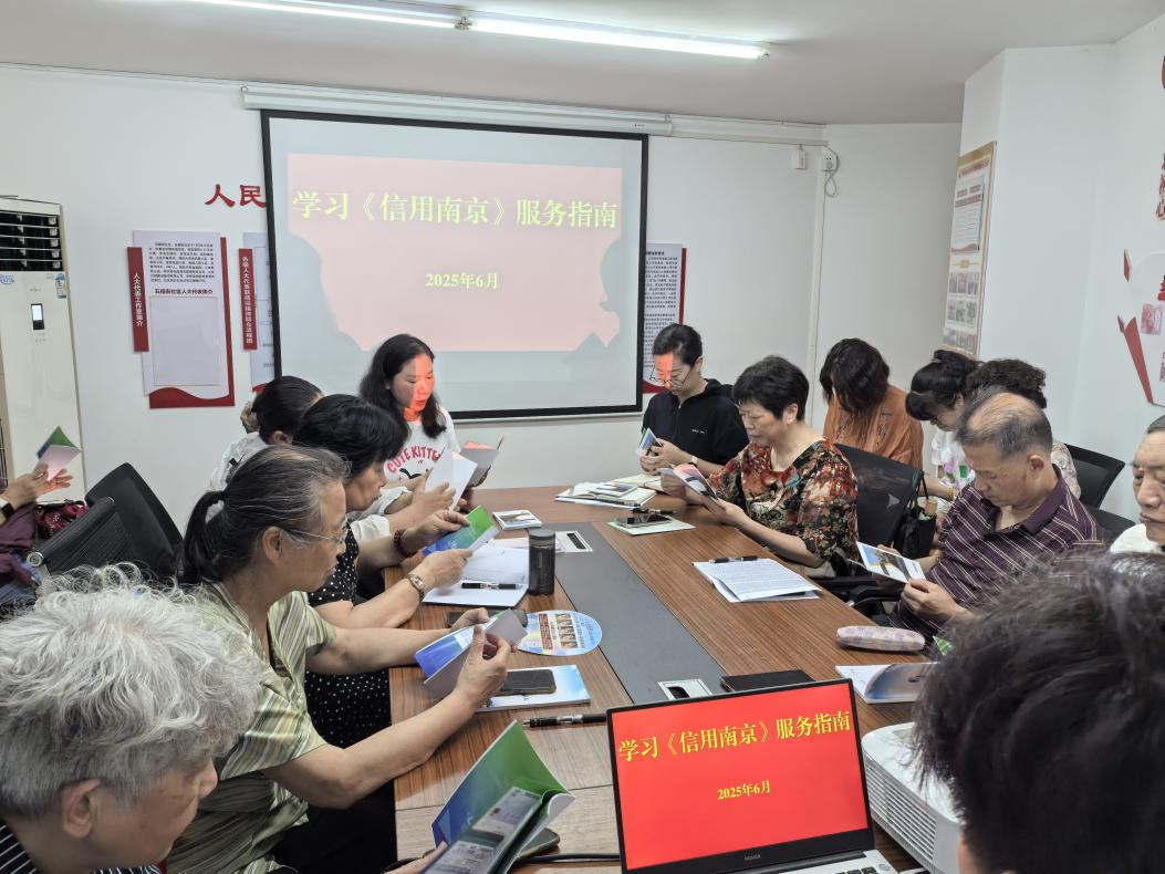 活动伊始,社区组织工作人员、党员代表集中学习《信用南京》服务指南,围绕信用修复、惠民应用、失信惩戒等内容进行详细解读,强化信用知识储备,为后续宣传打下坚实基础。“只有自己学懂弄通,才能更好的向商户传递信用价值。”一位参与学习的党员表示。