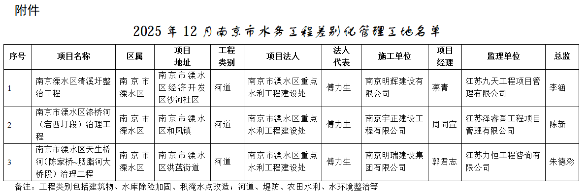 附件:2025年12月南京市水务工程差别化管理工地名单