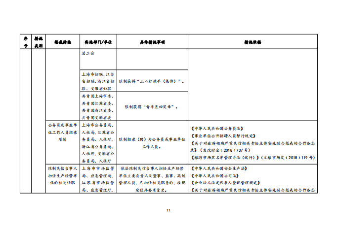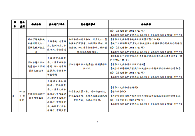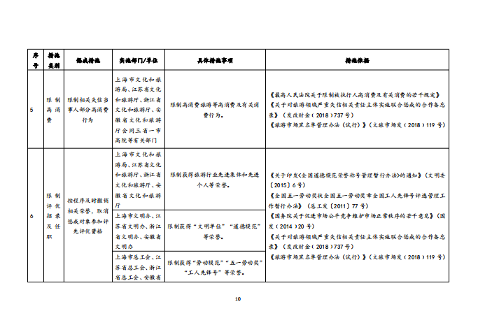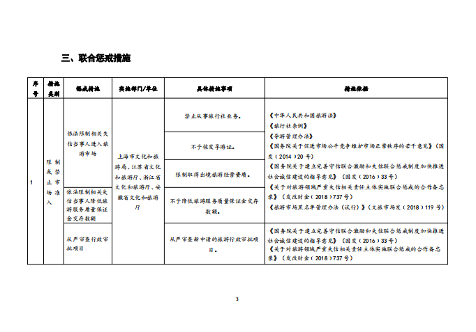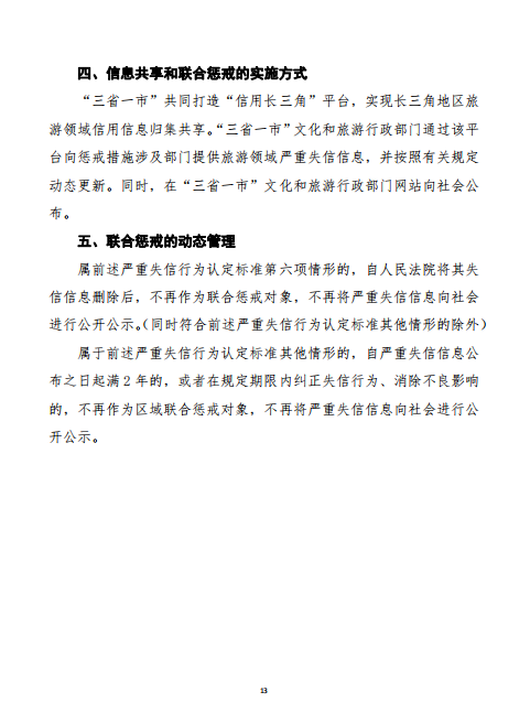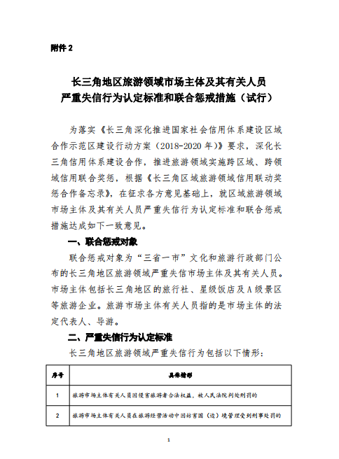 长三角地区旅游领域市场主体及其有关人员严重失信行为认定标准和联合惩戒措施(试行)