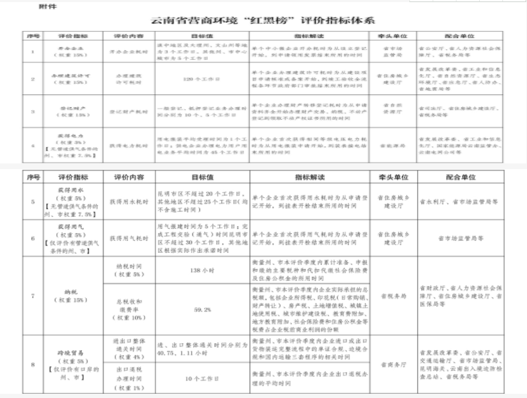 云南省人民政府办公厅关于建立营商环境“红黑榜”制度的通知