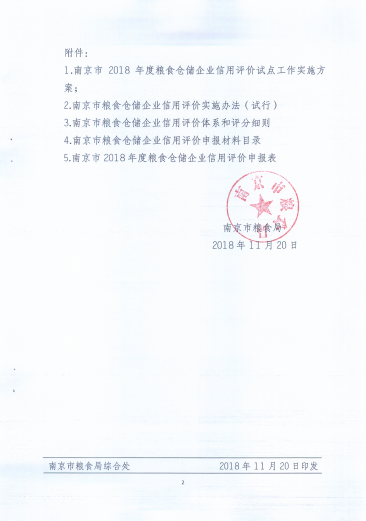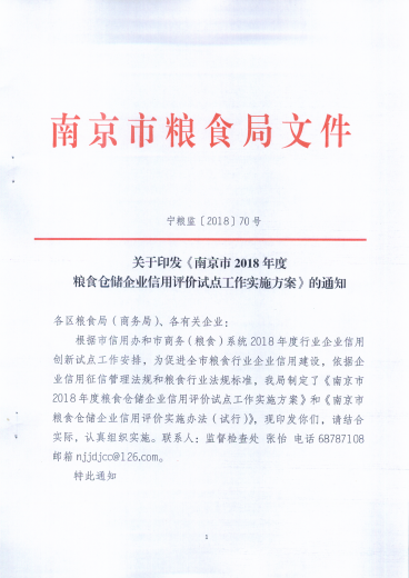 关于印发《南京市2018年度粮食仓储企业信用评价试点工作实施方案》的通知