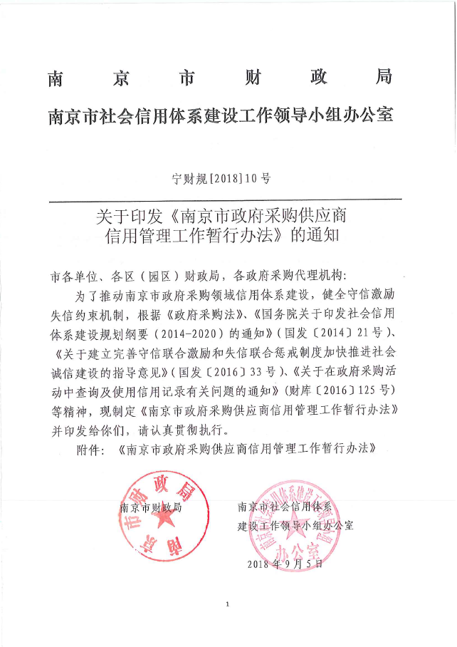 关于印发《南京市政府采购供应商信用管理工作暂行办法》的通知